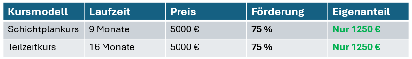Kursgebühren inkl. BAföG* ab 1250€